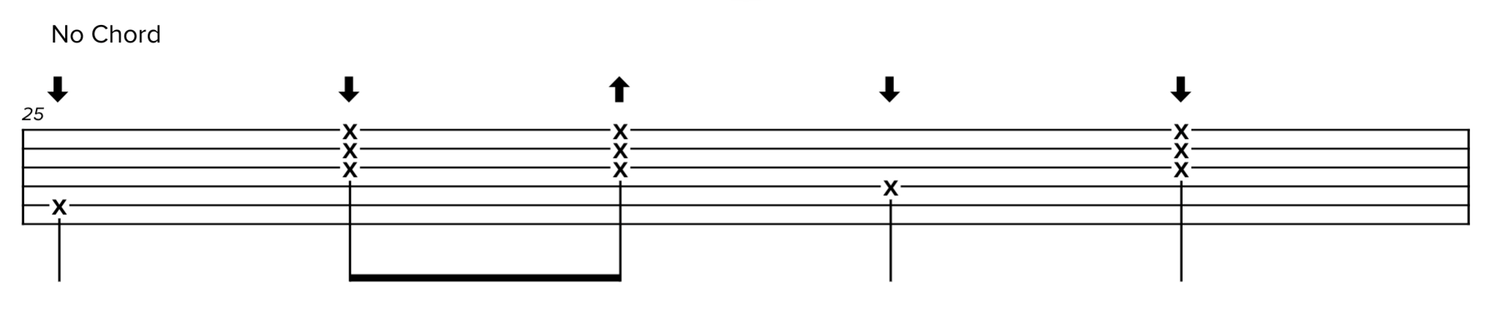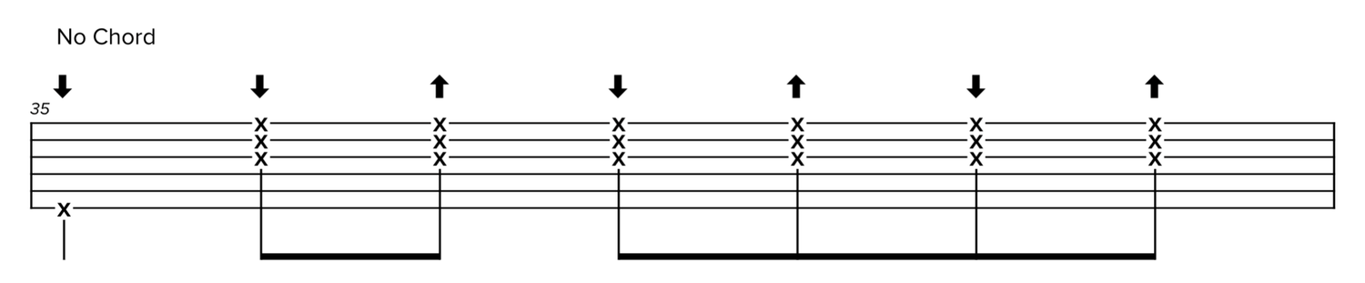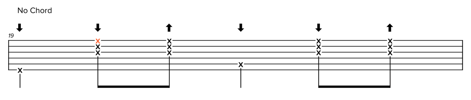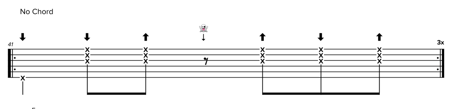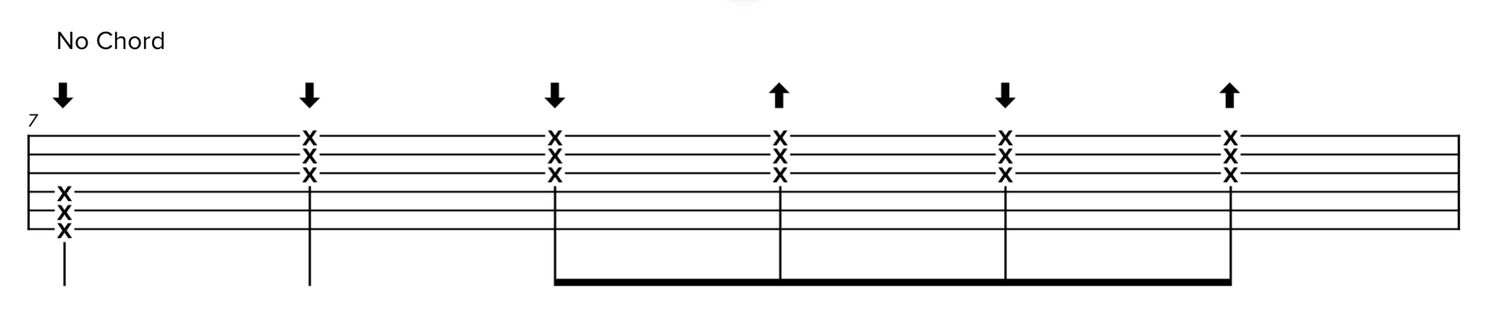 That silent “miss” keeps your hand moving without hitting the strings, creating a bouncy, dance-like groove that defines the song.
